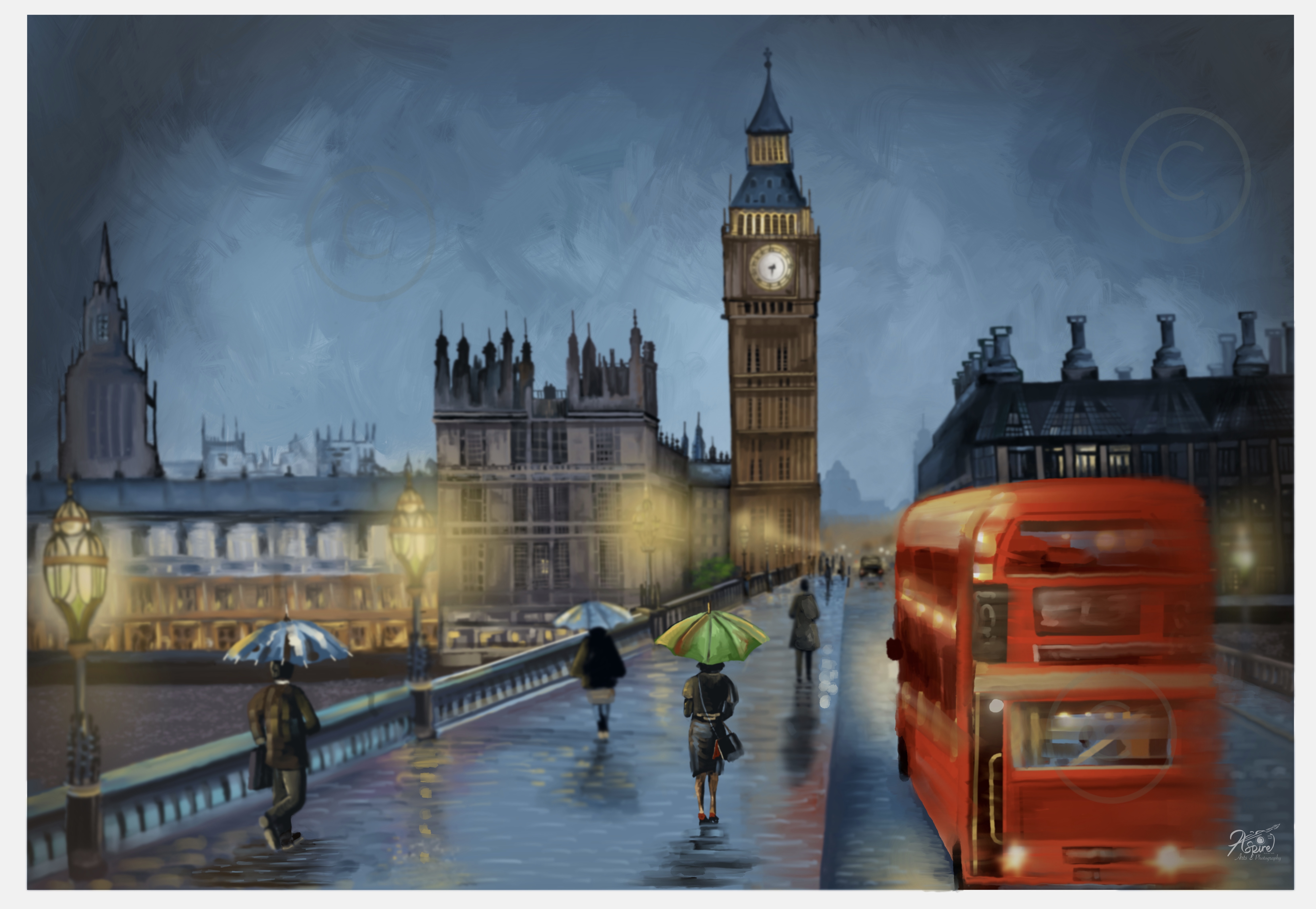 “ The Commute” Dawn breaking on westminster bridge (digital painting) I have done this walk many times,10 years travelling into London. Those Autumn and Winter mornings when darkness seems to start and finish your commute.