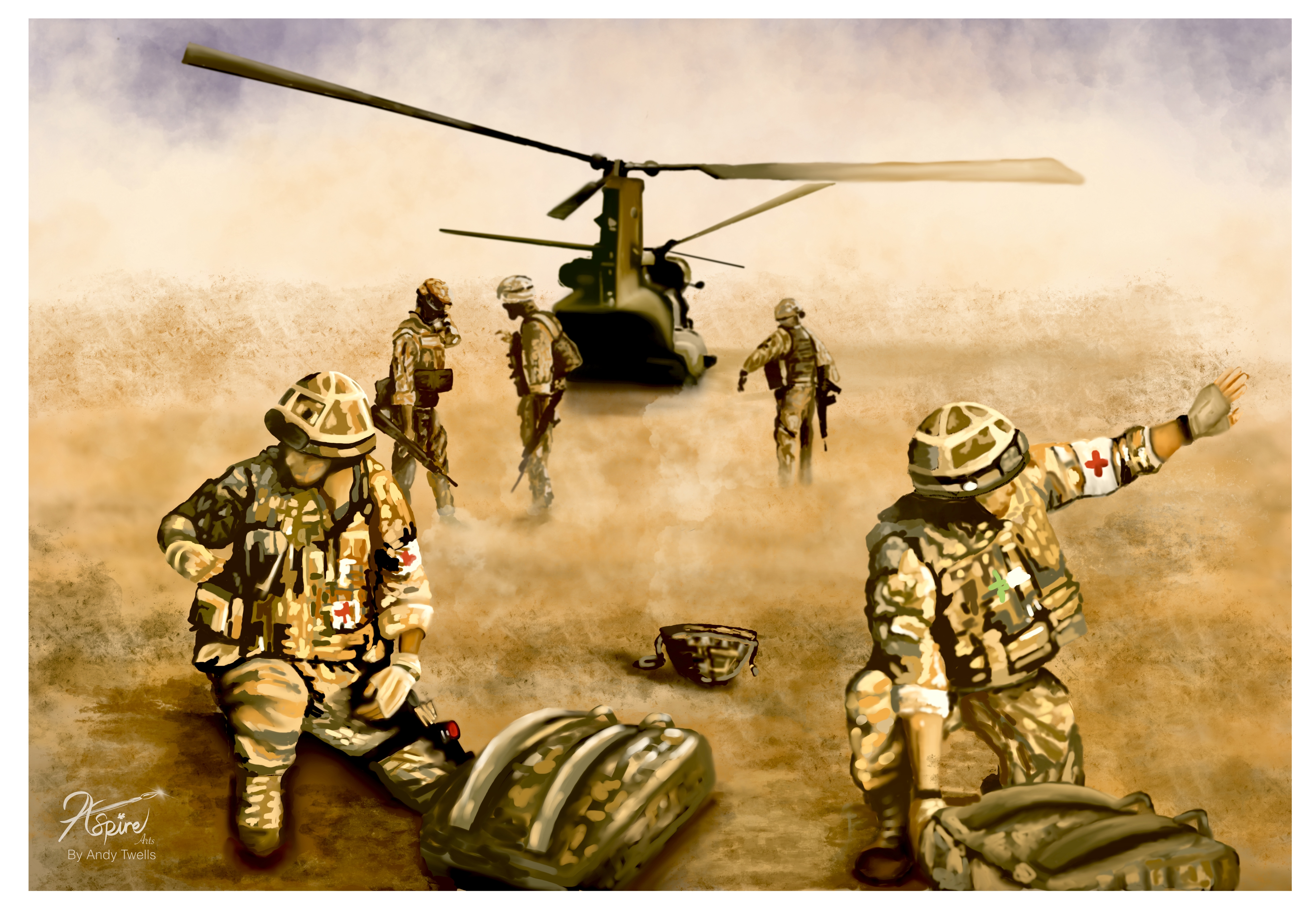 ‘Bring them home is’ purposely painted with loose suggestions and detail so that the viewers eye can create the finished image in their head. The abandoned helmet reflects on those already lost. Moreover it then depicts any and all that work as a team to defend our nations security and principals.